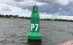 Fahrwasser ist durchgehend betonnt. Von der letzten Tonne
