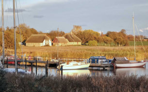 besteht aus mehreren denkmalgeschützten und reetgedeckten Häusern. In unmittelbarer Nachbarschaft liegen die
